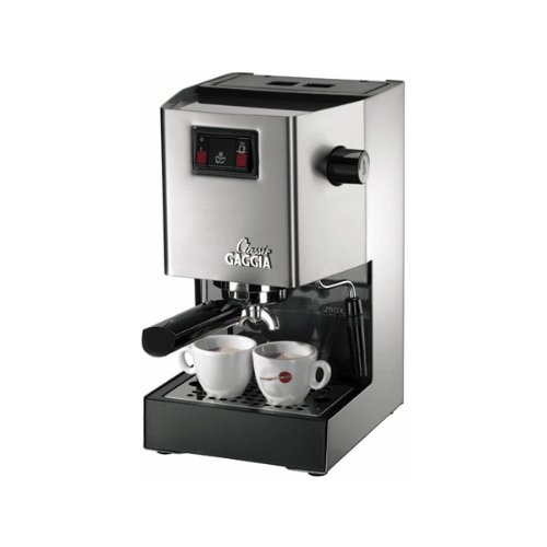In 1947, Achille Gaggia introduced the first pressure brewing espresso machine into the world. Today, the Gaggia Classic is a best selling model, standing as a timeless piece of kitchen equipment that is applauded by coffee aficionados worldwide. With its commercial style portafilter, brew group, and three-way solenoid valve, the Gaggia Classic provides a combination of convenience and maximum productivity. By creating a virtually dry puck that is easy to knock out of the portafilter, these features help to make clean up simple and mess-free unlike other espresso machines that feature pressurized style portafilters. Heat stability and retention are also unmatched with the Gaggia Classic, thanks to the full 1 lb of chrome-plated marine brass that makes up its commercial style portafilter. The Classic's easy-to-use brewing and steaming controls are paired with a traditional appearance that matches stainless steel appliances and fits perfectly into any upscale kitchen, making this machine a must-have for any at-home barista. Includes two stainless steel filter baskets (one and two shot), a coffee tamper, a 7g measuring scoop, and an instructional CD.
